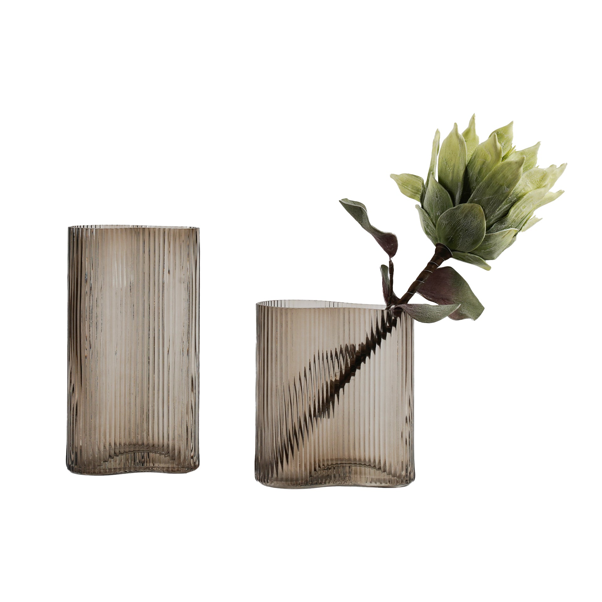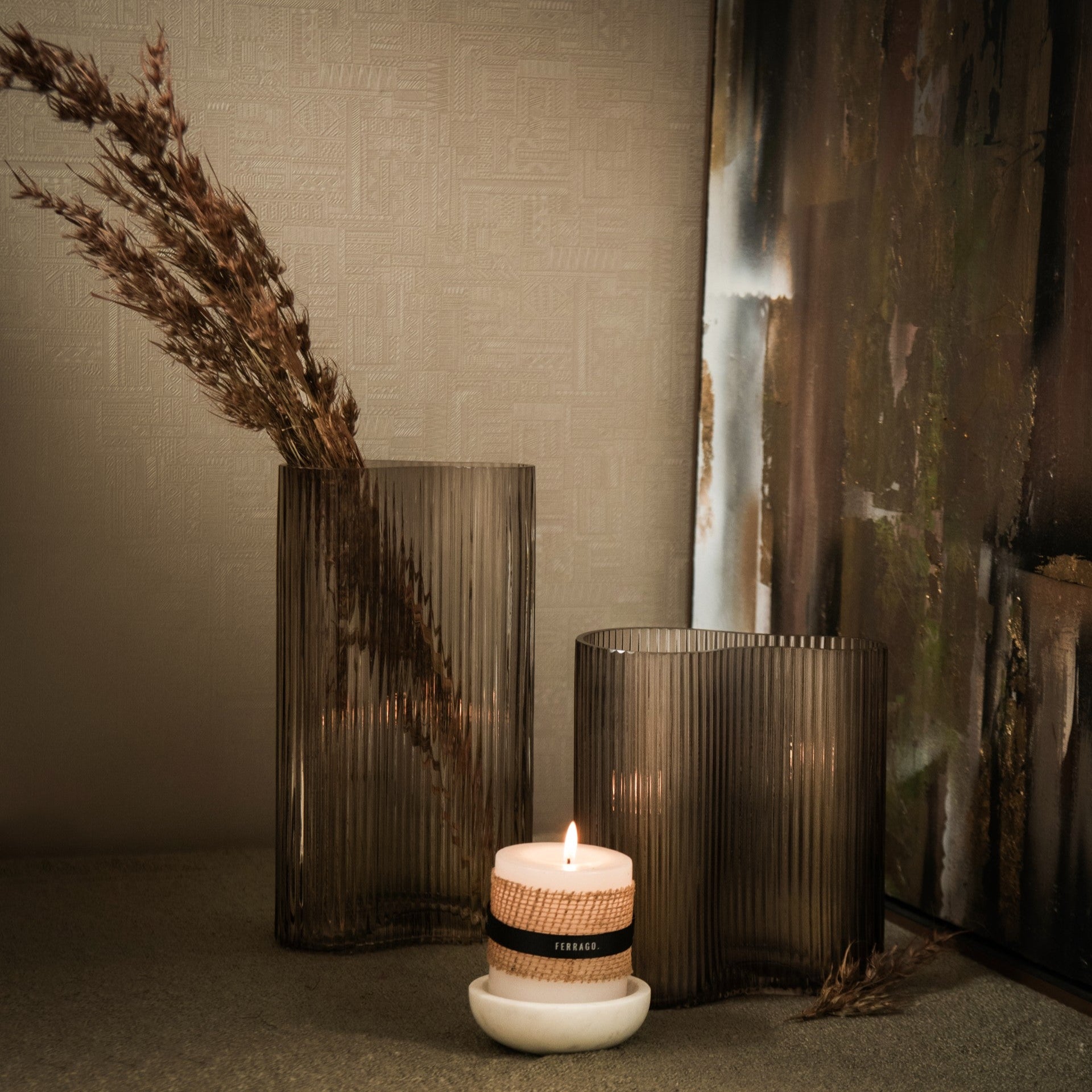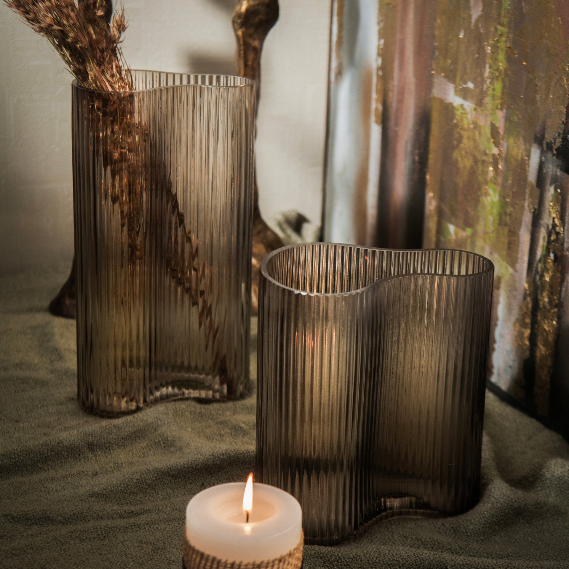 Ferrago Amber Wave Glass Vase Collection brings timeless elegance to your living space. These handcrafted vases, featuring an amber Striped texture, are perfect for enhancing any corner of your home or office. Whether used to hold fresh flowers or as a standalone decorative piece, they exude sophistication.