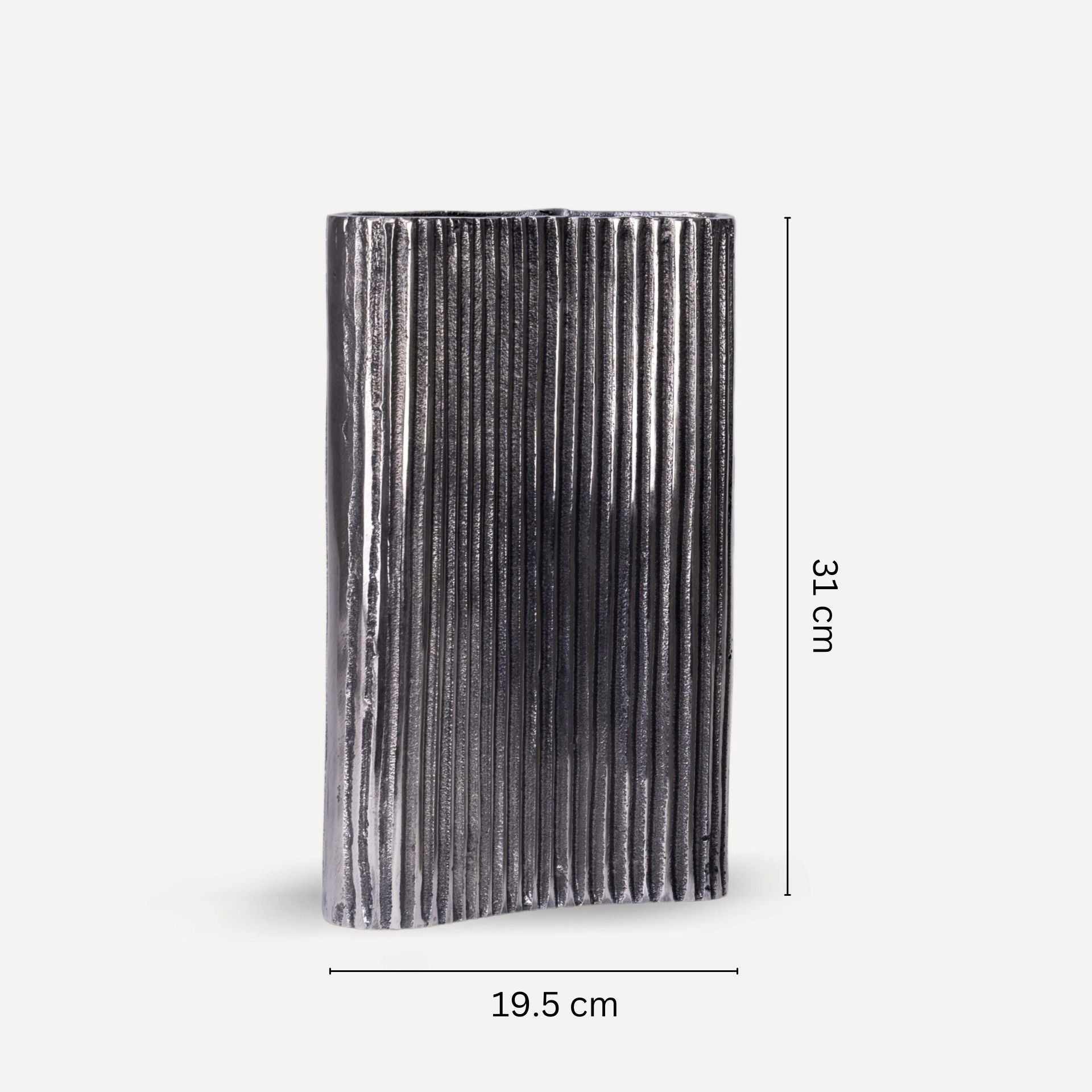 Colour: Antique Silver, Pattern: Striped, Finish:Glossy, Material: Aluminium, Dimension: Mid- 17 x 5 x 23 | Grande- 19.5 x 6 x 31 (cms).