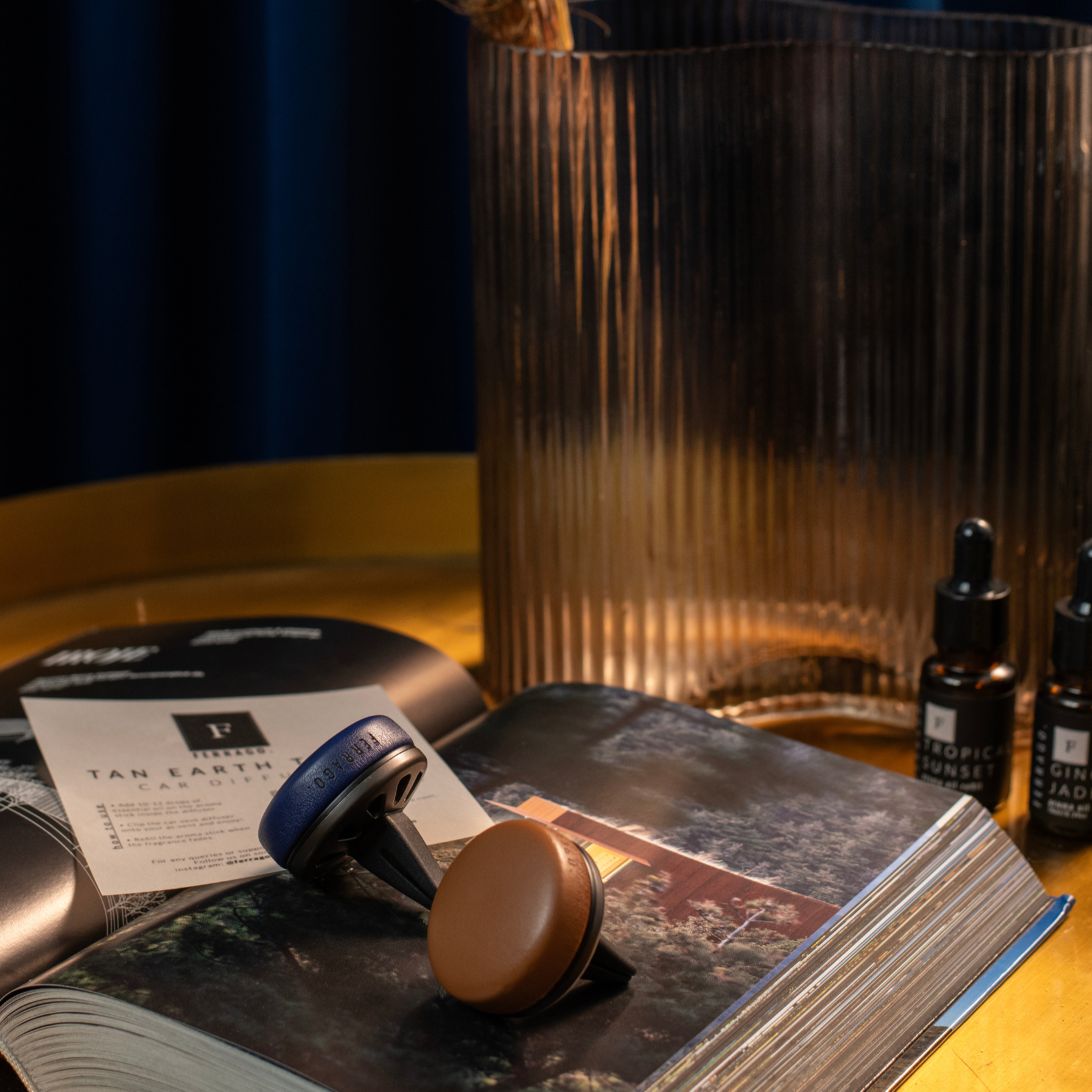 - 1 x Ferrago Twist Car Diffuser: Available in Midnight Blue or Tan Earth, featuring a magnetic vent clip for easy installation.