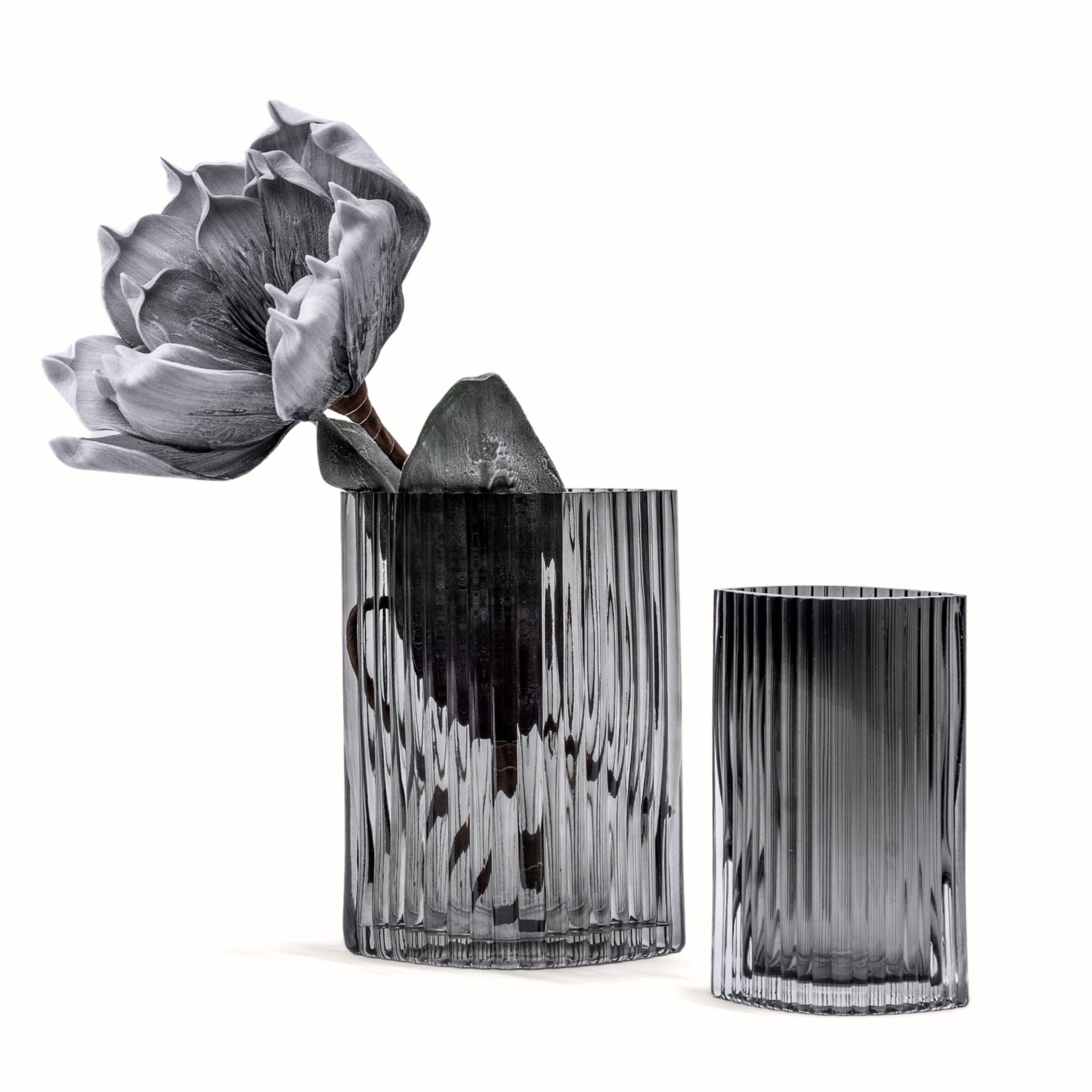 Disclaimer: Each Ribbed Noir vase is handcrafted from natural glass, ensuring no two pieces are identical. Slight variations in shape, texture, or size, as well as occasional air bubbles, are inherent to the artisanal process and contribute to the vase’s unique charm. Actual color may slightly vary from the images due to lighting and screen resolution.