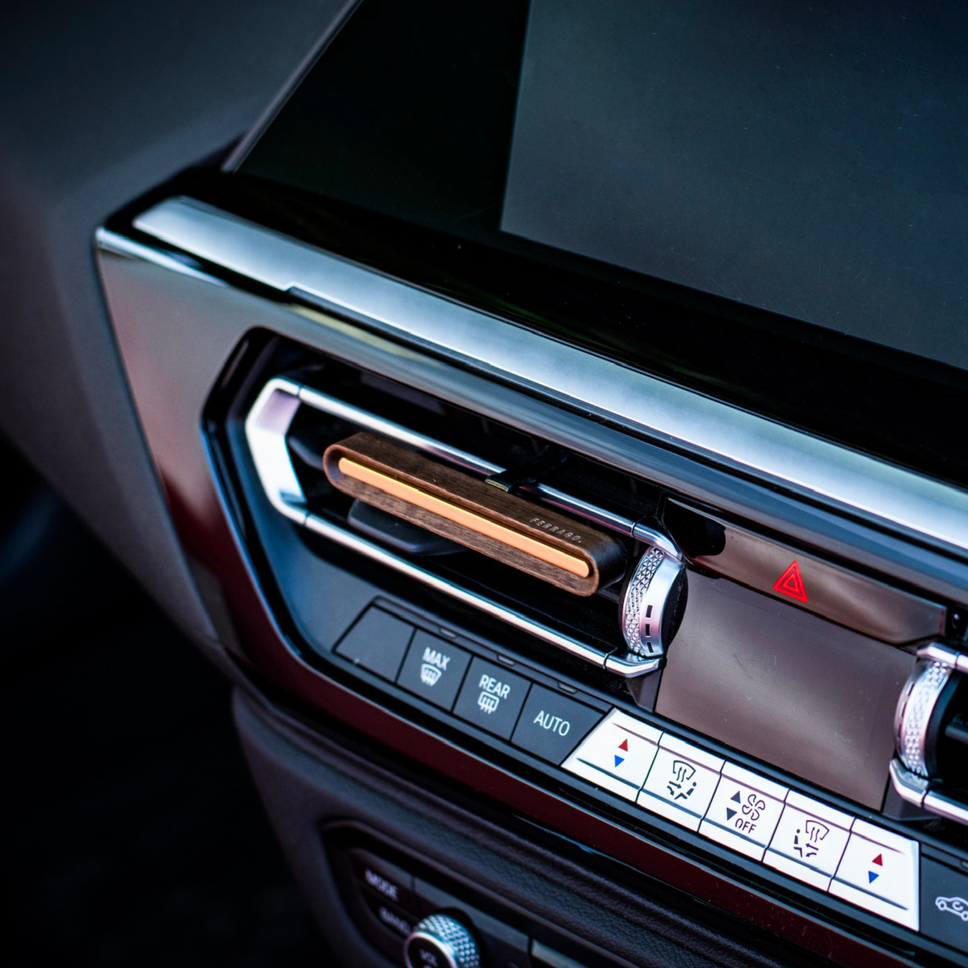 Introducing the Streamline Car Diffuser, a pinnacle of minimalist design and luxury that seamlessly blends into your vehicle’s interior. Crafted with a sleek, elongated form, the Streamline diffuser combines natural wood and refined metallic accents, offering a subtle yet sophisticated aesthetic that enhances your driving experience. The warm, organic beauty of the carefully selected wood, complemented by modern metallic touches, strikes a perfect balance of elegance and understated luxury.