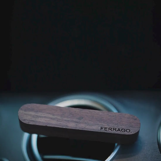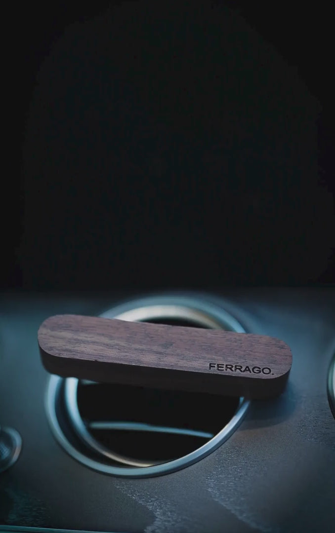 - Each Ferrago car diffuser is crafted from natural wood and premium materials. Variations in grain and colour are a mark of authenticity, making every car perfume piece uniquely refined.